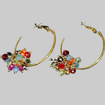 A bouquet of man made gems set onto 18k gold hoops that will never fade of tarnish. Hoops have a solid closure so you can dance and swim and they won't come undone. Perfect for summer, perfect for parties.