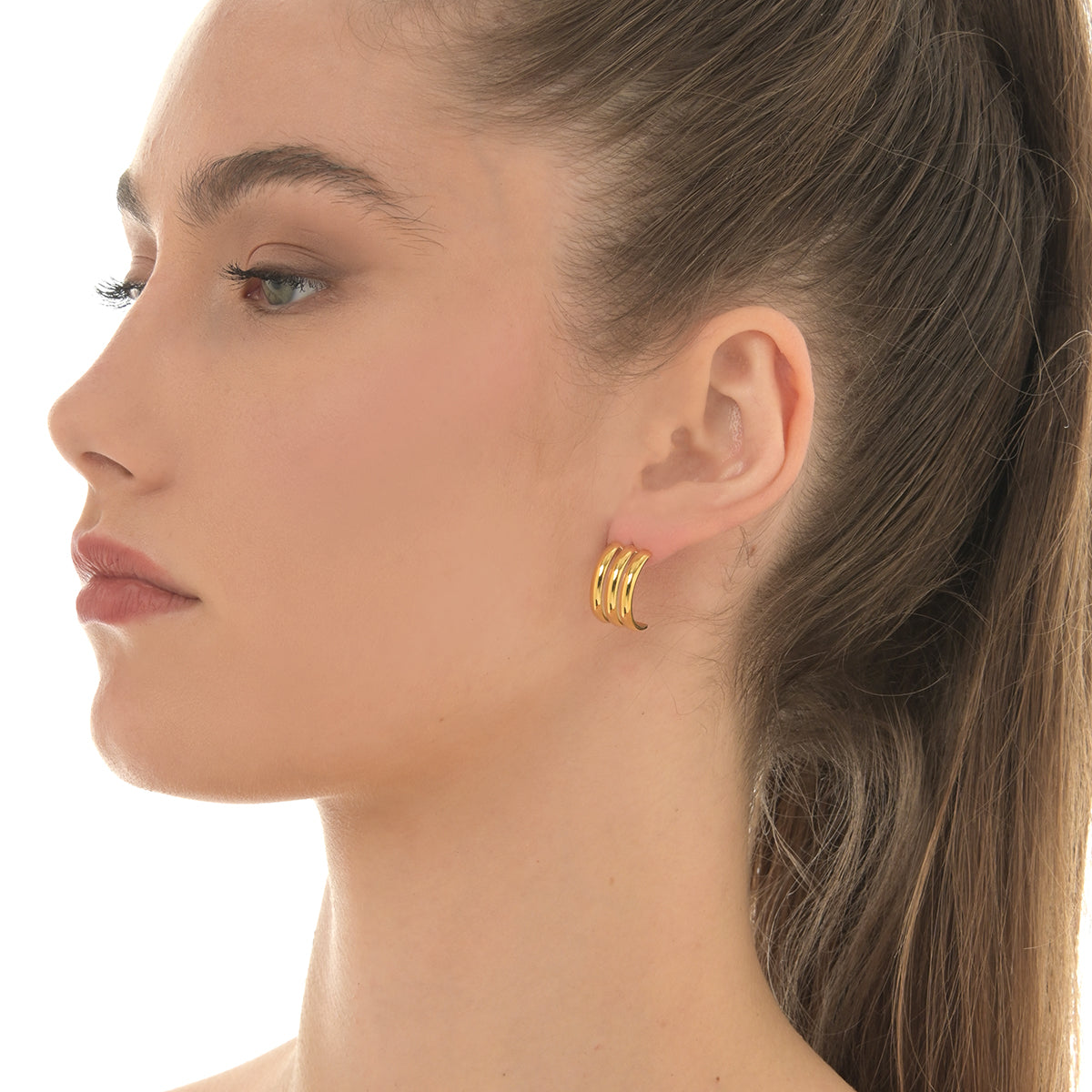 Three seperate, yet identical curved bars make this earring just a little over a cm in width and 2cm's from top to bottom. Secure stud push back fastener offers max comfort. Incredibly light, yet heavy in the style department.