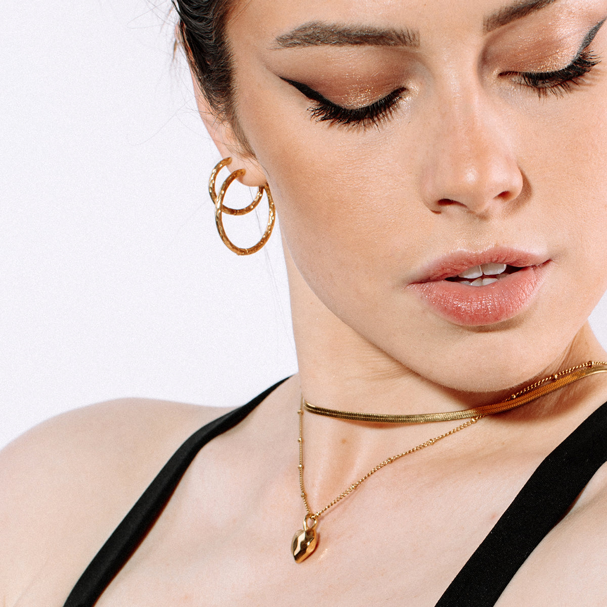 Isabel is the French word for beautiful, and these earrings certainly do live up to that name. Ideal to wear with double piercings up the ear or own their own as sleepers allowing you to mix and match them depending on your occasion or mood. With an eye-catching hammered texture set in beautiful gold, these earrings offer an elegant, quality look that will elevate any outfit. Comfortable to wear all day, every day. No tarnish, no allergic reactions. Sublime.
