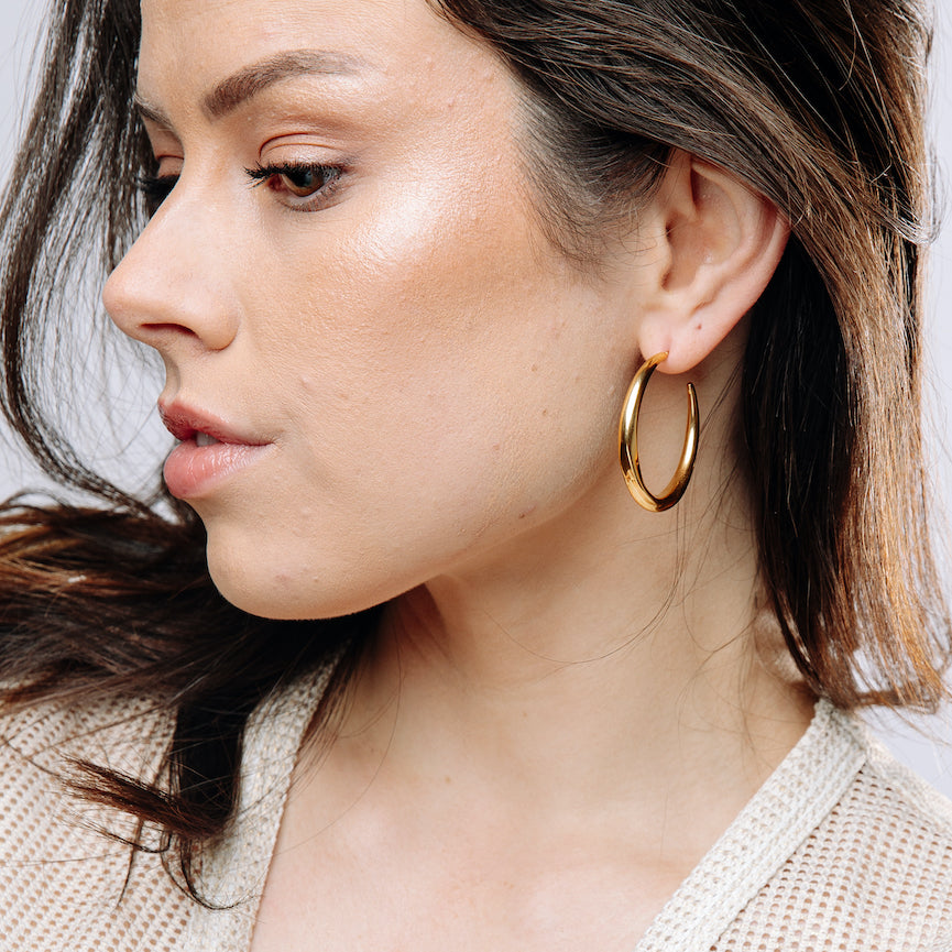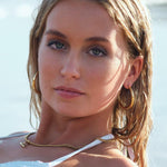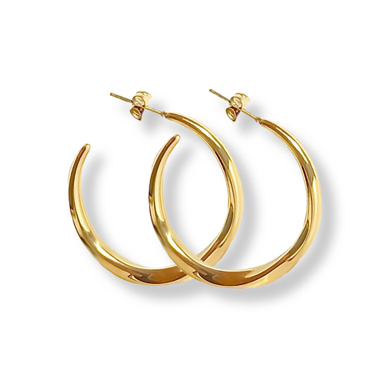 These gorgeous gold earrings are designed to tantalise the eye with their alluring design, making them perfect for any fashion-forward woman. The interesting shape gives an understated elegance that will instantly elevate any outfit. Whether it's a night out or a day in the office. Their Spanish name  Rica - means both Sexy and Rich - what better way to show off your style? Anywhere! As all our pieces are waterproof, tarnish proof and allergy safe.