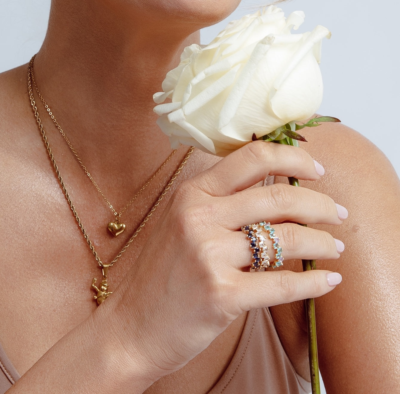 We choose to make all our jewellery with you in mind. So our care advice is, to look after yourself. You go for a swim, you go to the gym, you get sweaty, you go to sleep, you apply cosmetics and creams. You wear any of our pieces whenever you like, for as long as you like to whatever you like.