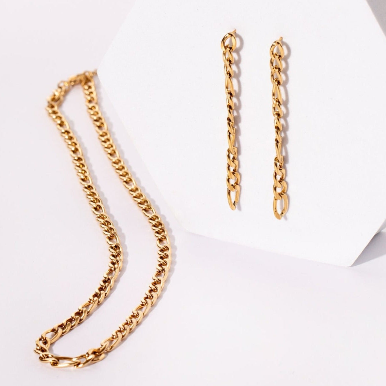Our Venecia Fine earrings offer the same but with a smaller width. This pair have a wider width just like the necklace chain.